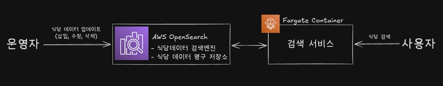 초기 설계에서는 식당 데이터를 OpenSearch에만 저장하여 이를 영구 저장소로 활용했습니다. 그러나 OpenSearch는 빠른 검색과 분석에는 최적화되어 있지만, 데이터 일관성과 장애 복구 기능이 제한적이므로 영구 저장소로 사용하기에는 부적합하다는 한계가 있었습니다.